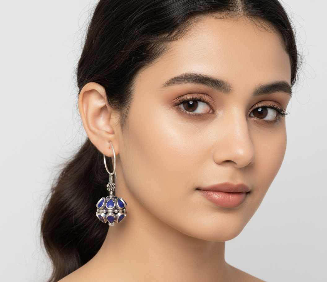 The classic hook design ensures these earrings sway gracefully, catching light and attention with every movement. Perfect for both formal events and everyday wear, they add a touch of regal sophistication to any ensemble, blending timeless beauty with the charm of heritage craftsmanship. Inspired by the royal heritage of Rajasthan, these earrings embody grace, tradition, and modern elegance.